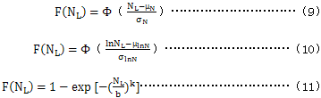 9.3在未知試驗齒輪的壽命分布函數時 ,一般採用正态分布,對數正态分布或二參數威布爾分布進行分布檢驗,確定分布類型,三種分布函數分别爲: