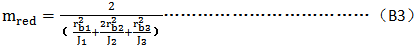 此時,内齒圈的當量質量按外齒輪處理,行星齒輪的誘導質量按式(B2)計算。當内齒圈與幾個行星齒輪齧合時,按B1.3c)處理。