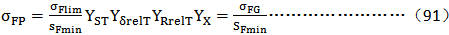 σFprelf——基準許用彎曲應力,N/mm2,σFprelf由式(91)計算 ,σFprelf等於由式(91)計算的σFP