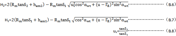 錐齒輪的邊疆接觸區爲稍帶錐度的帶狀形。然而,在大多數情況,可較好地用平行的帶狀接觸區來近似,連同兩個切向速度的重合並(bìng)在方向上與長軸垂直,尤其是當曲率半徑的正確定值和赫茲接觸帶已知時,可直執著(zhe)使用權原來的公式(A.1)。爲瞭方便起見,公式可以被改寫 ,即用直線來近似“8”字作用線,並(bìng)且系數用錐齒輪的一般量來表達。