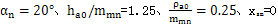 在法截面内,當量圓柱齒輪參數見GB/T10062.1的附錄A。刀具輪齒基本齒條齒廓的尺寸見本部分的圖2。對於刀具基本齒廓爲的齒輪,其齒形系數可從圖3查得。其他的刀具基本齒廓參數見GB/T3480。