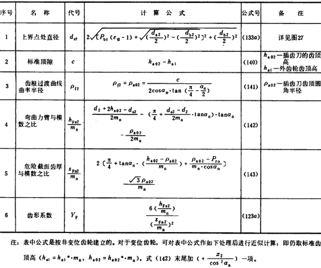 式(144)适用於标準或變位的直齒輪和斜齒輪。大、小輪的YFa應分别確定。