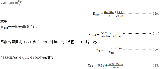 根據14.2的規定,粗糙度系數ZR是考慮齒面狀況對接觸疲勞(點蝕)強度的影響。圖5中的粗糙度系數曲線是Rz10和配對齒輪中較軟齒輪材料σHlim的函數 。該圖對節點處誘導曲率半徑 的齒輪副是有效的。