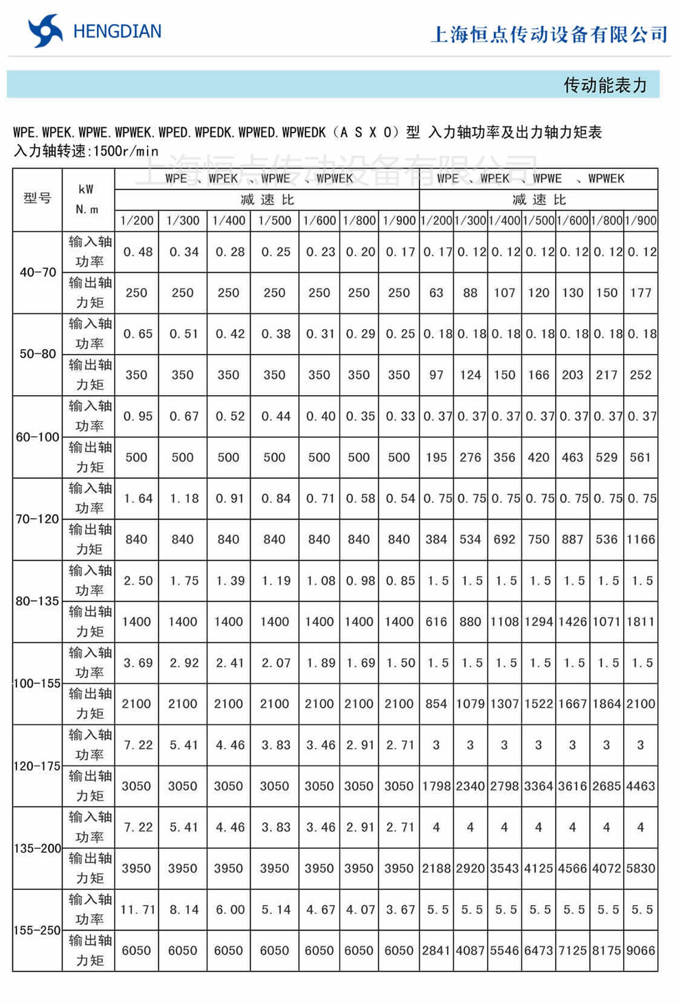 WPE.WPEK.WPWE.WPWEK.WPED.WPEDK.WPWED.WPWEDK(A S X O)型蝸輪蝸杆減速機入力軸功率及出力軸力矩表. WP系列雙級蝸輪蝸杆減速機如何選型,雙級WP減速機選型指南